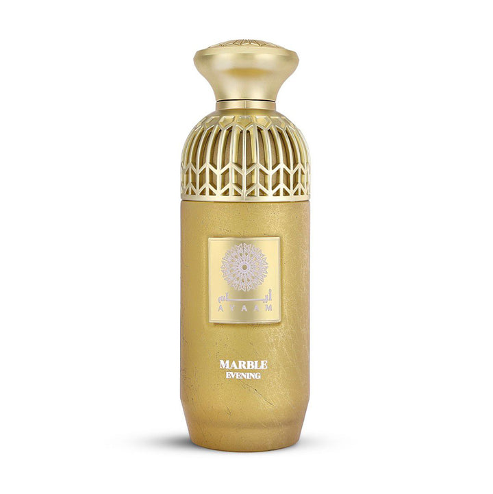يبدأ عطر ماربل إيفينينج بمقدمة من البرتقال الأحمر، برتقال يوسفي، لتعطي إشراقة فريدة تمزج بين القوة والرقي. يليها قلب نابض بخلاصة العسل، غاردينيا، زهر البرتقال، ياسمين، خوخ، لتضفي عليه دفئًا وعمقًا مميزين. بينما تتألق قاعدة العطر بمزيج متناغم من الكراميل، شمع العسل، باتشولي، عرق سوس، مما يمنح العطر لمسة خالدة ورائحة آسرة تدوم طويلاً.