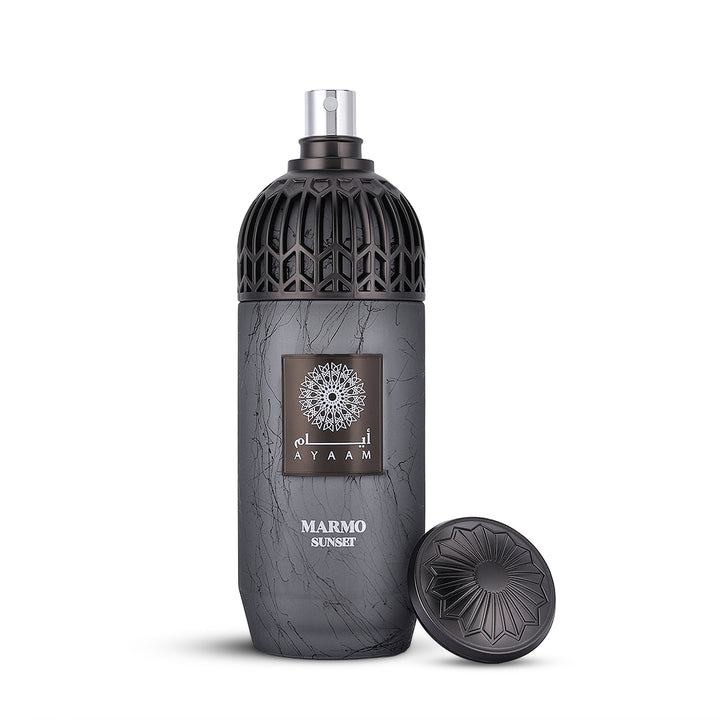 يبدأ عطر مارمو سن سيت بمقدمة من أوركيد الفانيليا، الياسمين، لتعطي إشراقة فريدة تمزج بين القوة والرقي. يليها قلب نابض بخلاصة السكر البني، حبوب التونكا، لتضفي عليه دفئًا وعمقًا مميزين. بينما تتألق قاعدة العطر بمزيج متناغم من العنبر، خشب العنبر، مسك، باتشولي، مما يمنح العطر لمسة خالدة ورائحة آسرة تدوم طويلاً.